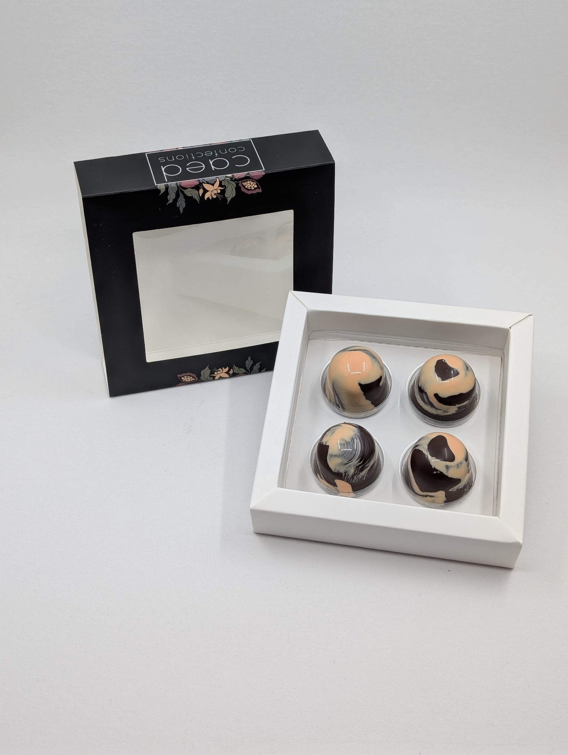 Our Peanut Butter Crunch Bonbon is the perfect blend of smooth and crunchy. Featuring a rich, creamy peanut butter filling with crispy dark chocolate pearls, each bite delivers a luscious texture and bold flavor. A must-try for peanut butter lovers!